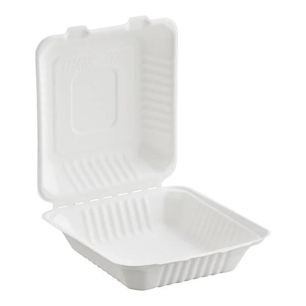 8″ x 8″ x 3″ compostable sugarcane / bagasse 1 compartment take-out box is perfect for restaurants, caterers, and sandwich shops that serve anything from hot entrees to cold salads. Package up take-out orders or leftovers for your customers while also taking a step toward going green with this environmentally smart option!