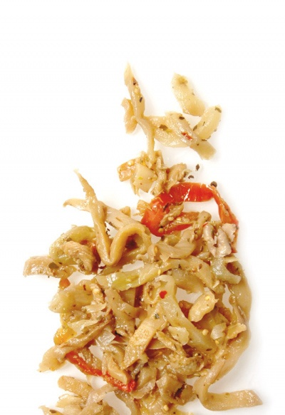 A classic Italian hors d’oeuvre: prime aubergines cut into strips and immersed in a mixture of oil and vinegar. A handful of herbs give the preparation an intense Mediterranean flavour.