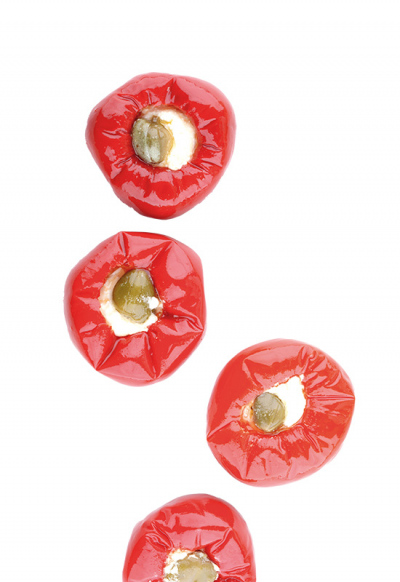 When the intense slightly spicy flavour of red chili peppers comes into contact with the fresh delicate taste of ricotta cheese and capers there is an explosion of flavour. A refined dish to liven up any cold buffet or aperitif.